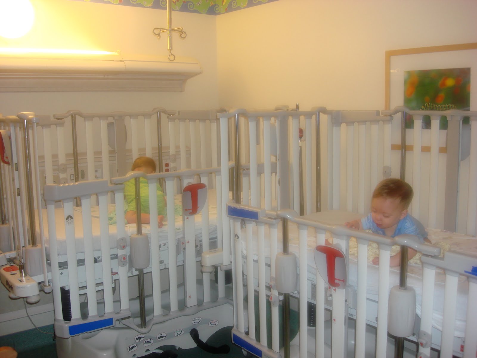 While we waited, the boys played with toys, watched cartoons, rocked with mom, paced the halls with dad, chewed on their lovies, sucked their thumbs, and Maverick could not get enough of the crib…