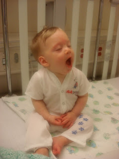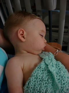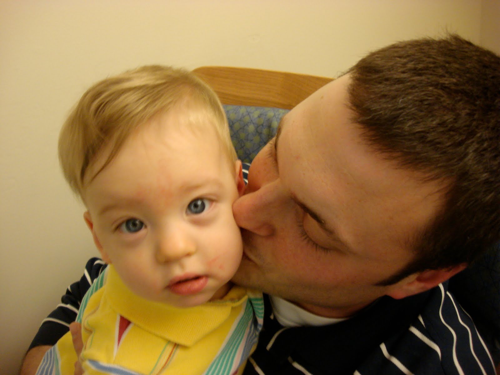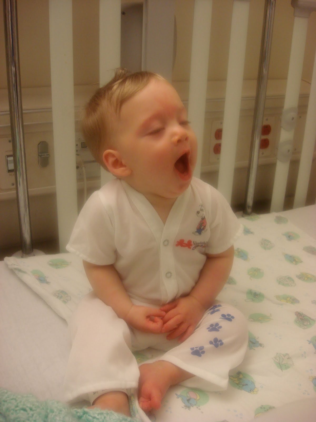They took Maverick back for surgery first. He did fine. While we were waiting for them to come and get Warner, “The Dubs” fell asleep in my arms. It was so sweet to have him so peaceful right before surgery. Chris was playing Matt Papa on his iPod while we were waiting & Warner just concked out!