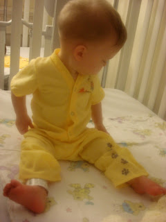 We changed them into their little baby “scrubs,” and we watched cartoons. All the nurses came by to get some smiles from our little guys. I was shocked at how well they were doing considering they hadn’t eaten since last night at 7:30pm!