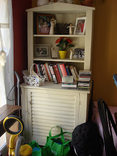 (move contents of desk stuff to white cabinet in kitchen)