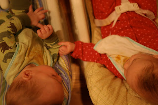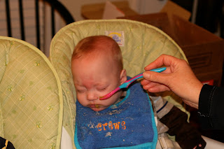 Boys are so different than girls, and one way of telling that is how they eat. Harper was nothing like this. It would take her 3-4 meals to finish one container of baby food. She is still a nibbler. Every now and then she will eat a gigantic meal, but usually we have to coax her to eat with some sort of ‘surprise’ at the end of her meal! The other morning she woke up, sat down to eat some eggs picked up her fork, and paused. She looked at me with her bright honey brown eyes and with all sincerity (while nodding her head) asked, “cookie after eggs?” hahaha…guess I will have to work on that. These boys won’t have any trouble eating. I wish there was a way I could start stocking up on food now for when they are teenagers!!! I can only imagine!