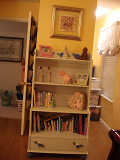 So here is the book shelf, with the main point, being the little galley closet off to the right. I love that this is out of sight. We use it for extra storage. Babies build up a lot of stuff to be stored very fast!!!