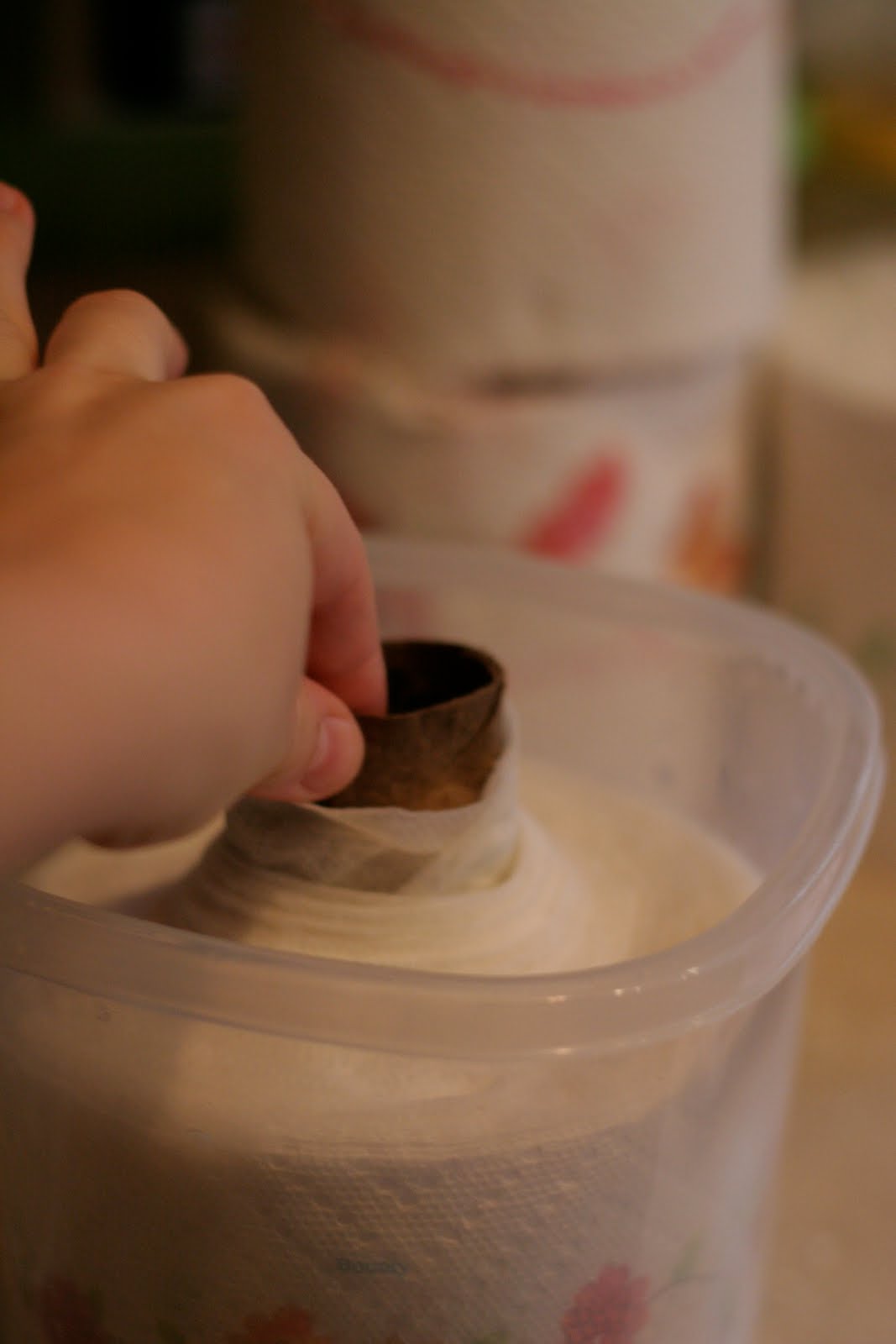 #5 – Pull out the cardboard part of the paper towels & pull the wipes from the center!