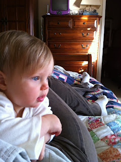 Tonight I actually tried to trick her into nursing. I rocked her a little with her head on my shirt. As she relaxed more and more, I would lay her back little bit by little bit. She did great until she got to the point where her cheek touched skin, and then she started whimpering, so I sat her back up and just cuddled more. What in the world?!