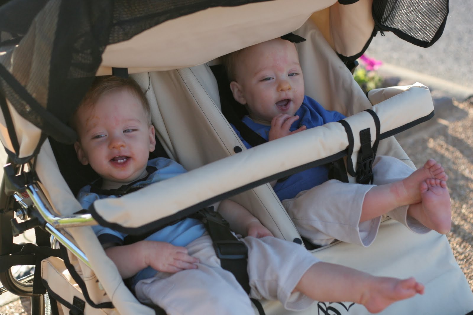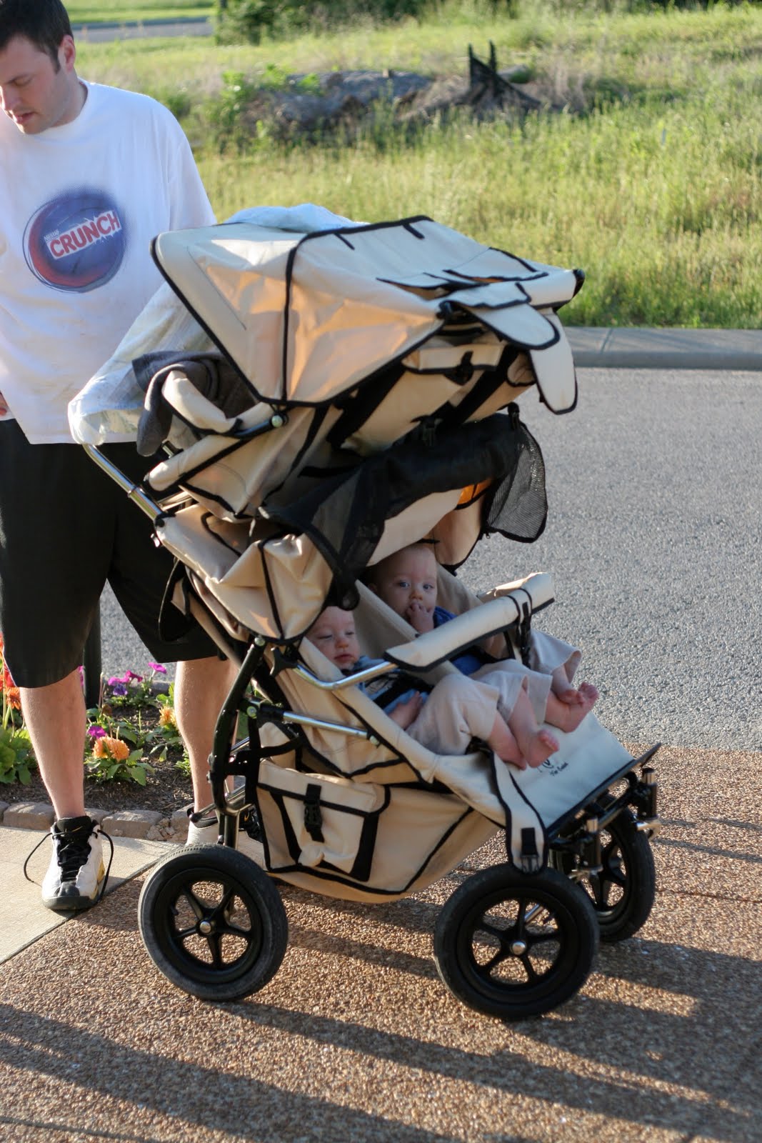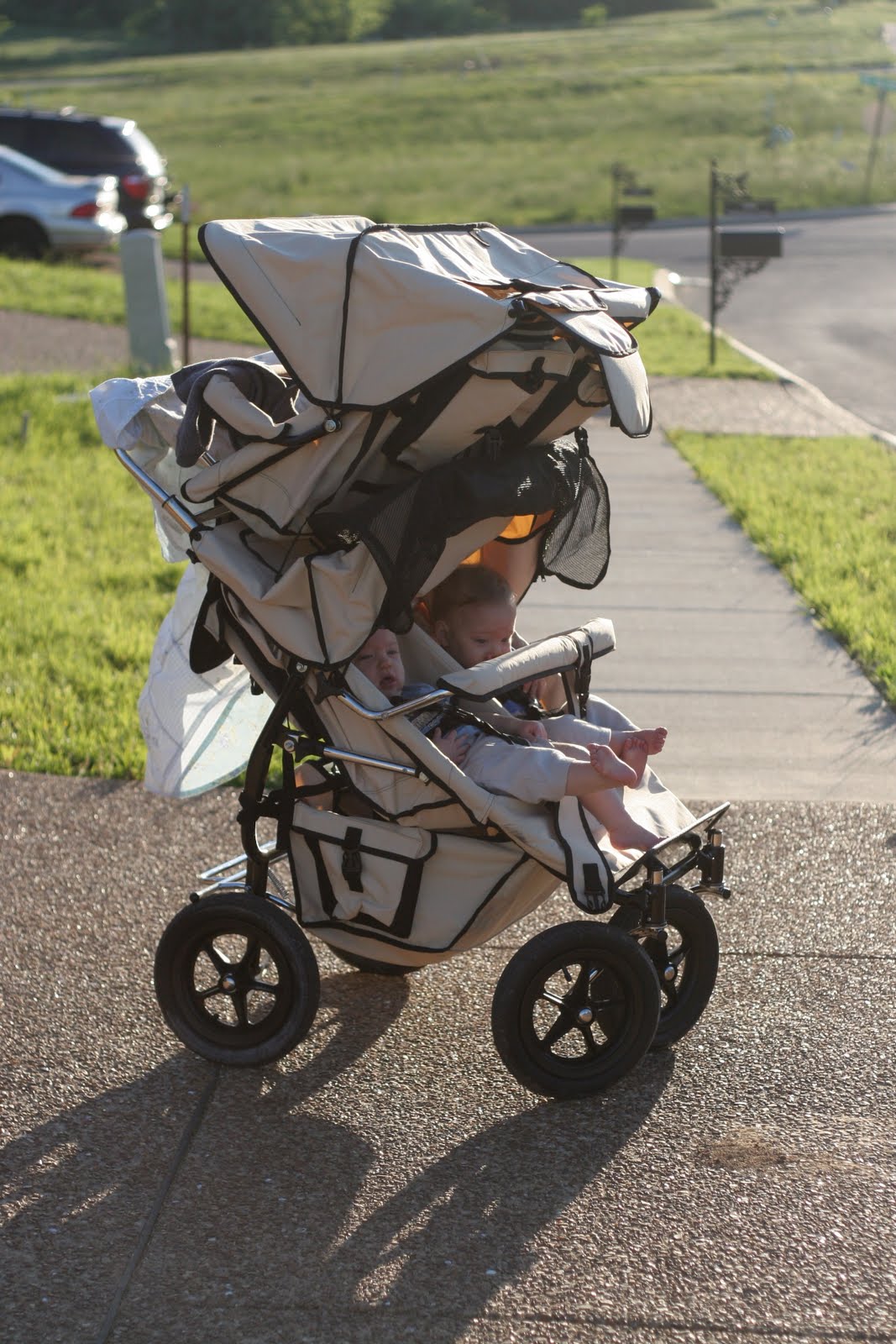 Wow, I’m so glad to see a picture of your stroller:) It is a hotel on wheels… Our double stroller we lovingly call the stretch limo. I think yours should be called the double decker (like the double decker busses in London!)