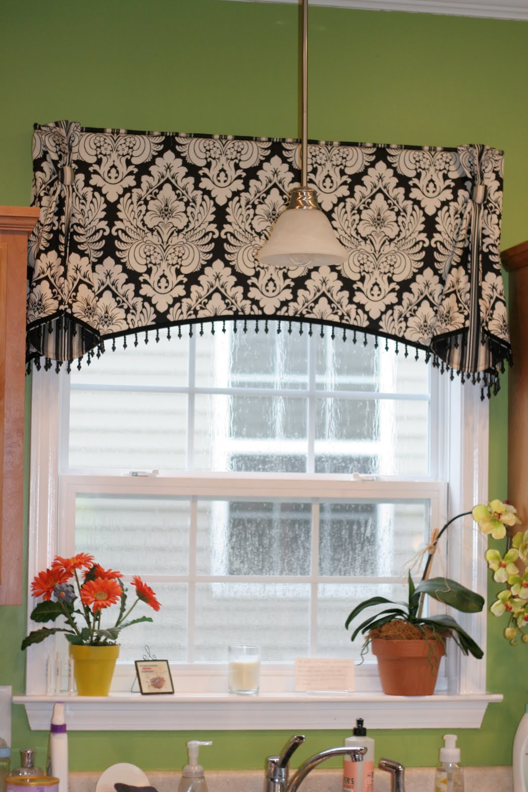 Wow what a difference that paint makes! I LOVE, LOVE, LOVE IT! The valance is very cool and the fabric you used…CLASSY!