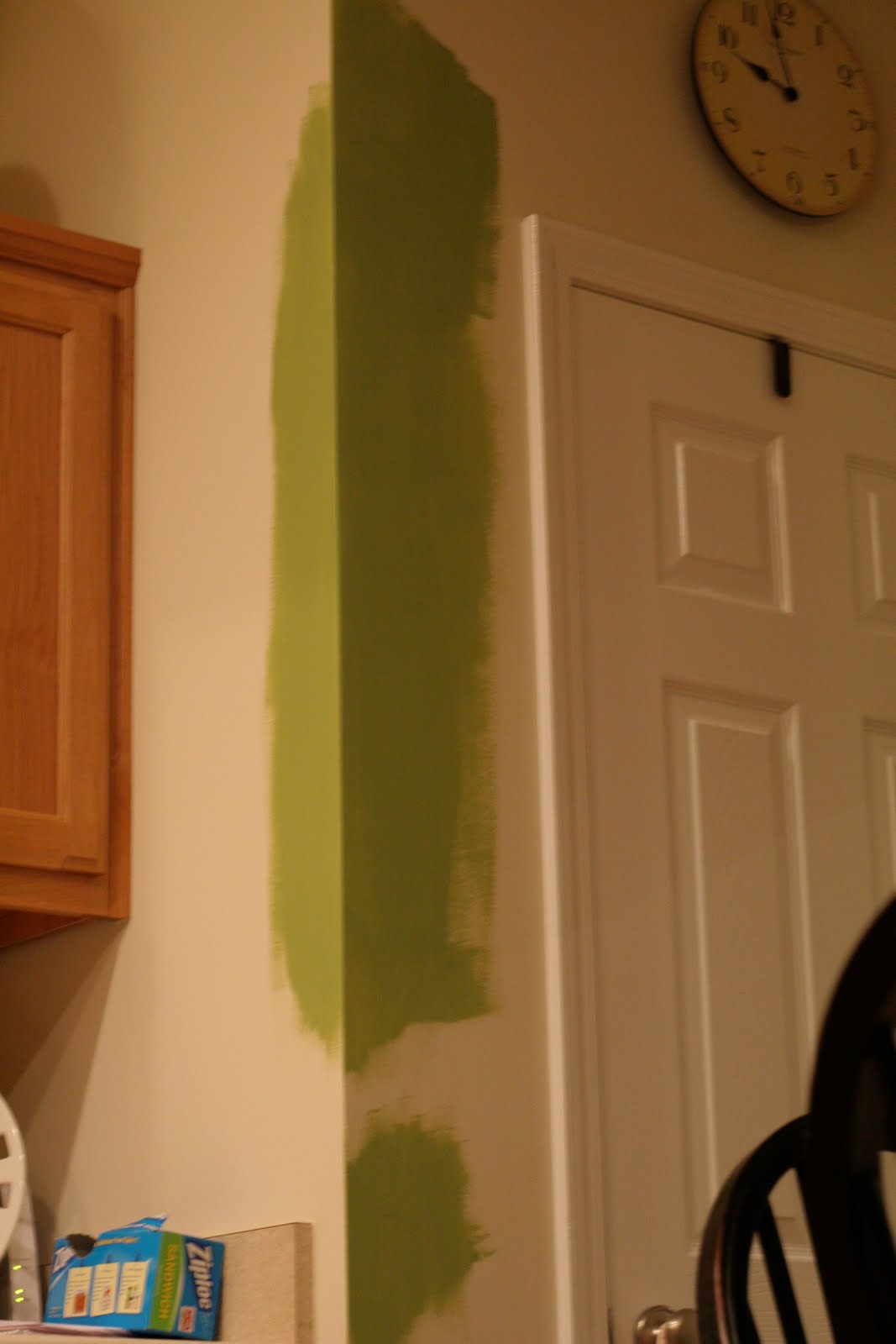 I LOVE bright colors – green, pink, orange, yellow, blue! I really wanted my kitchen to be a fun color, so I went with this green & surprisingly Chris liked it! I have big plans for our house with all the colors – tastefully done though. of course. The night before we painted (much thanks goes to my Dad, Leslie, Ryan & Reba!!!) I *HAD* to see what the color looked like! It looked so yummy I could just take a bite out of my asparagus walls! BTW… I love asparagus so much. One day, my lunch was just a plate of asparagus. Seriously. Even though it does do stuff to your wee wee. (did I really just write that on my blog?) Anyway, back to my delicious walls…