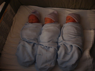 We left the hospital on Sunday afternoon with all three of our little guys. We had a great time in the hospital with such an amazing staff. The doctors and nurses took such great care of us, and we were able to sing praises to our LORD every time one of them mentioned how “uncommon” it was to have ALL THREE boys so healthy and in the room with us on the day of birth! I love it when God shows off!