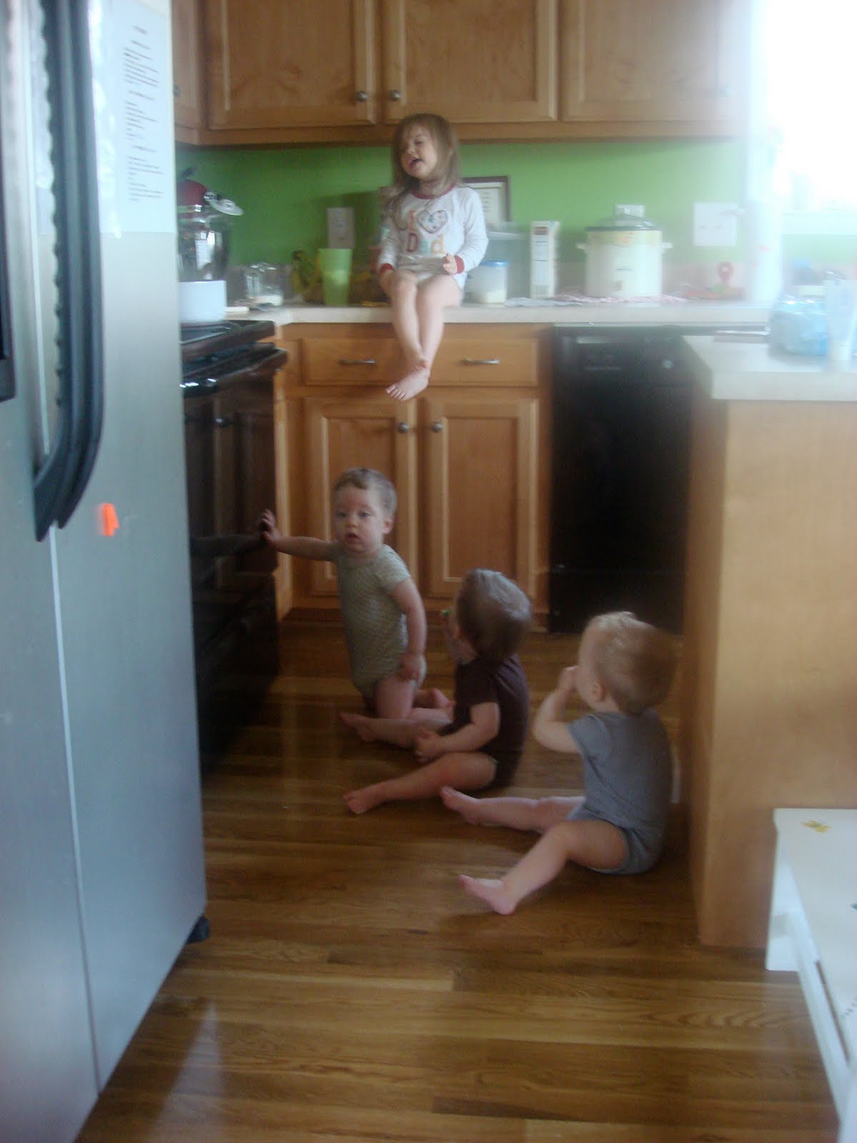 Harper looks like she’s just enjoying sitting on the counter…and appears to be singing? The boys on the other hand appear ready for dinner! 🙂